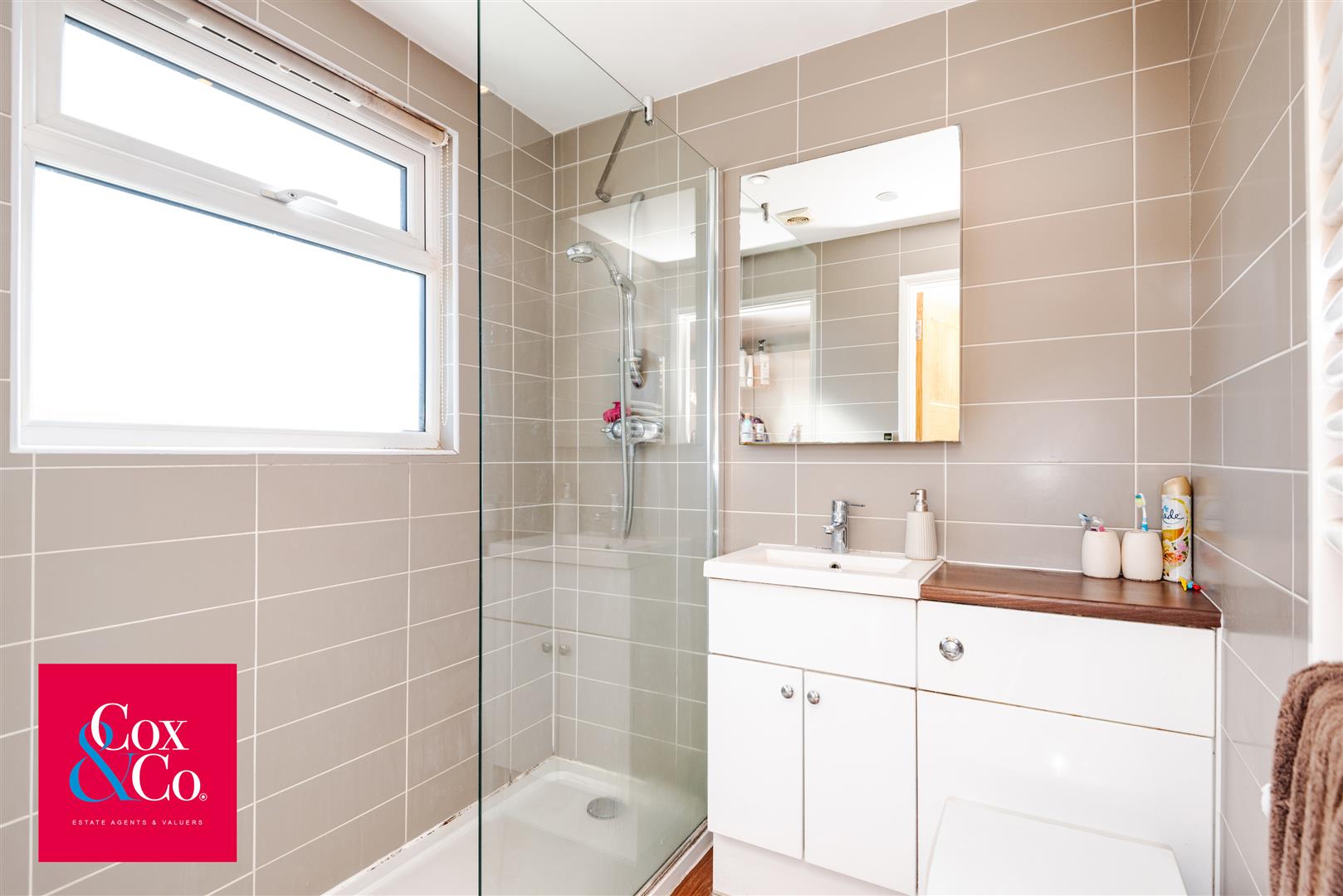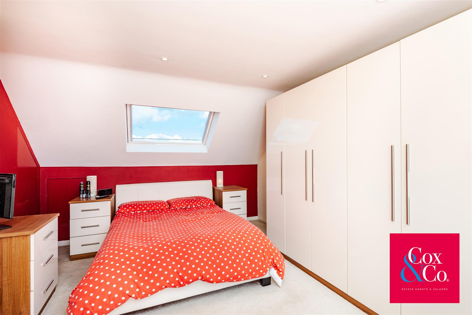 On the first floor, there are two generous double bedrooms, a versatile single bedroom or home office, and a stylish, modern family bathroom. The top floor features an impressive loft conversion that serves as the primary bedroom suite. This exceptional space enjoys far-reaching views towards the sea and across the South Downs, enhanced by an electric Velux window with built-in blinds. A contemporary ensuite shower room completes the suite, featuring a WC and basin.