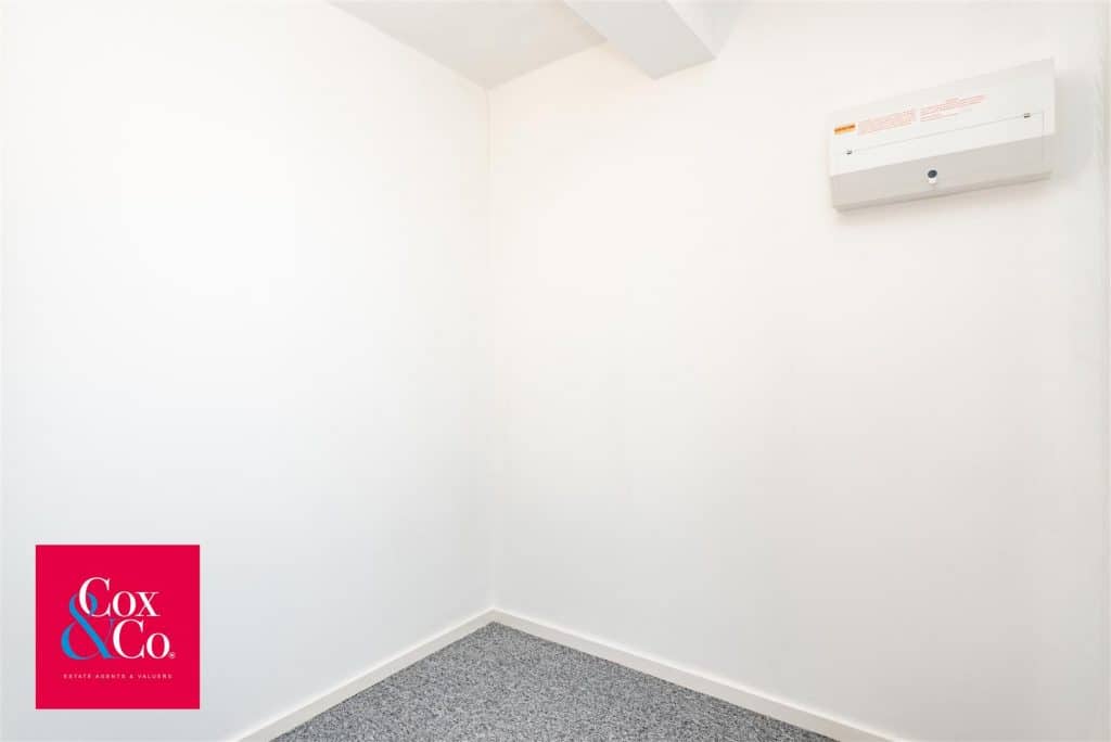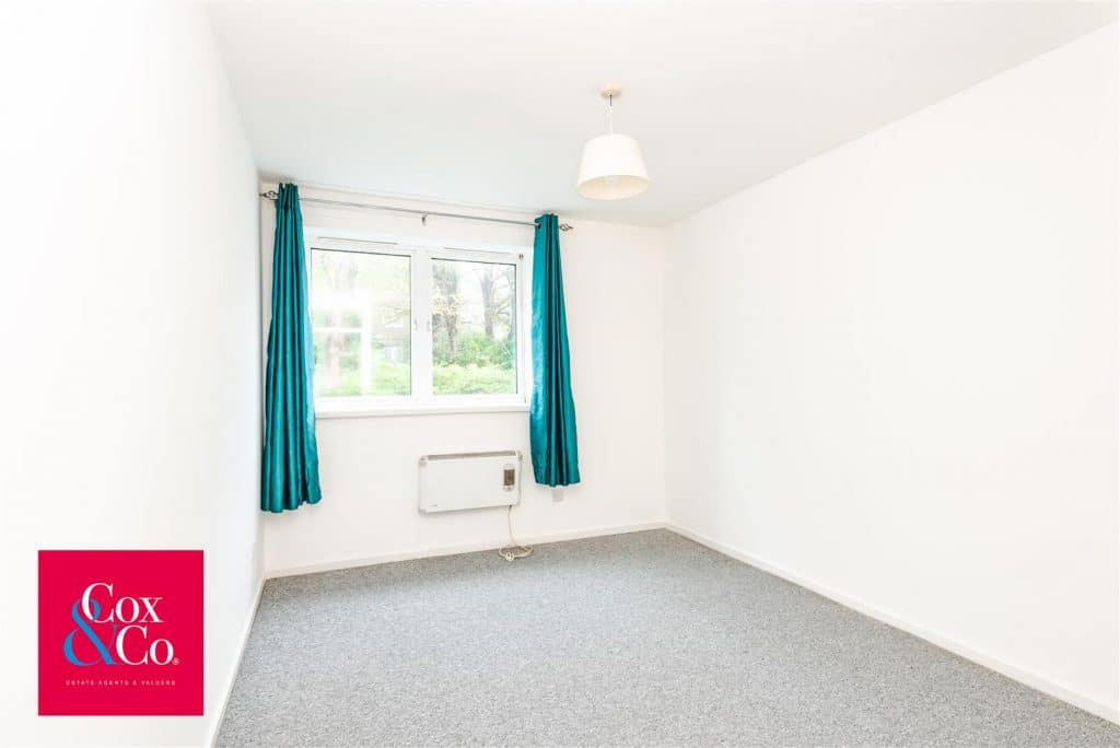 The apartment features a bathroom with a shower-over-bath and basin, accompanied by a separate WC conveniently located off the hallway. Further along, you’ll find a versatile study/storage room—ideal as a home office, hobby room, or additional storage space to suit your needs. There is also a built-in storage cupboard off the hallway for added convenience.