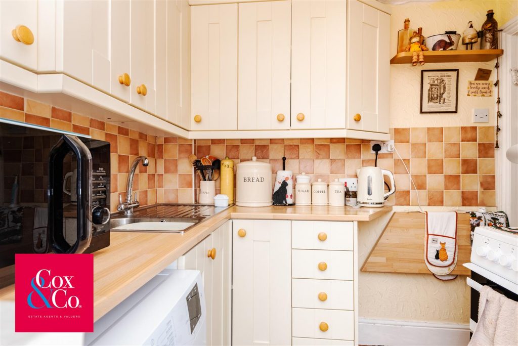 Stepping inside, the property opens into a well-presented kitchen, setting a homely tone as you move through the apartment. Towards the rear, you’ll find two bedrooms: a comfortable double bedroom and a versatile single room ideal as a home office or guest space.