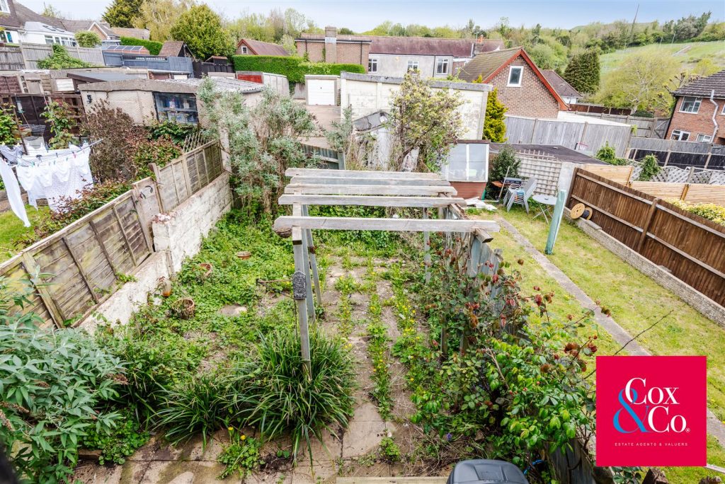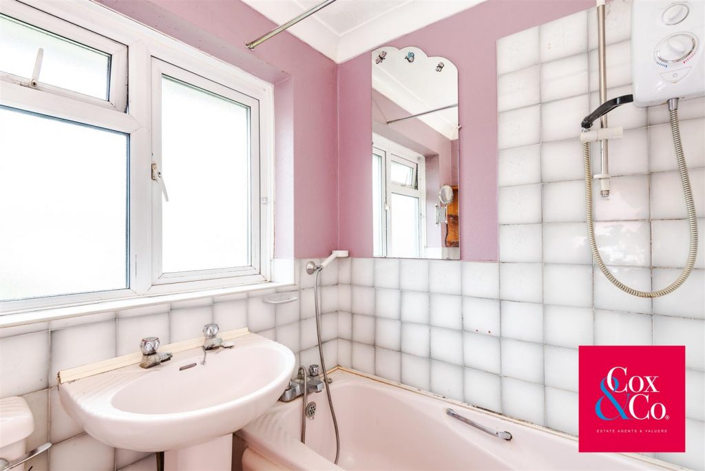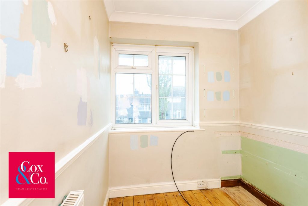 The kitchen offers direct access to the rear garden and presents significant potential for redesign or extension (subject to the usual consents). A shared side pathway runs beneath the house, providing useful access to the garden.