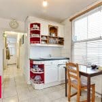 This ground-floor apartment has the potential to make into a rear garden if the current office/annexe is removed. The property is located on the sought-after St Leonards Avenue, which offers an exciting opportunity for modernisation and personalisation. Upon entry, you are welcomed by a central hallway with the living room positioned to the left, featuring two large windows that fill the space with natural light and a charming fireplace as a focal point.