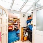 The kitchen is generously sized and located at the rear, offering ample storage and worktop space, along with room for a dining table—ideal for both everyday living and entertaining. Beyond the kitchen is a lean-to providing further storage and direct access to the garden. From here, you can also access an additional office or study, offering flexible use as a workspace, hobby room, or further storage.