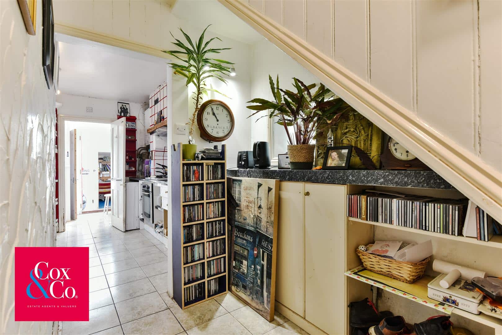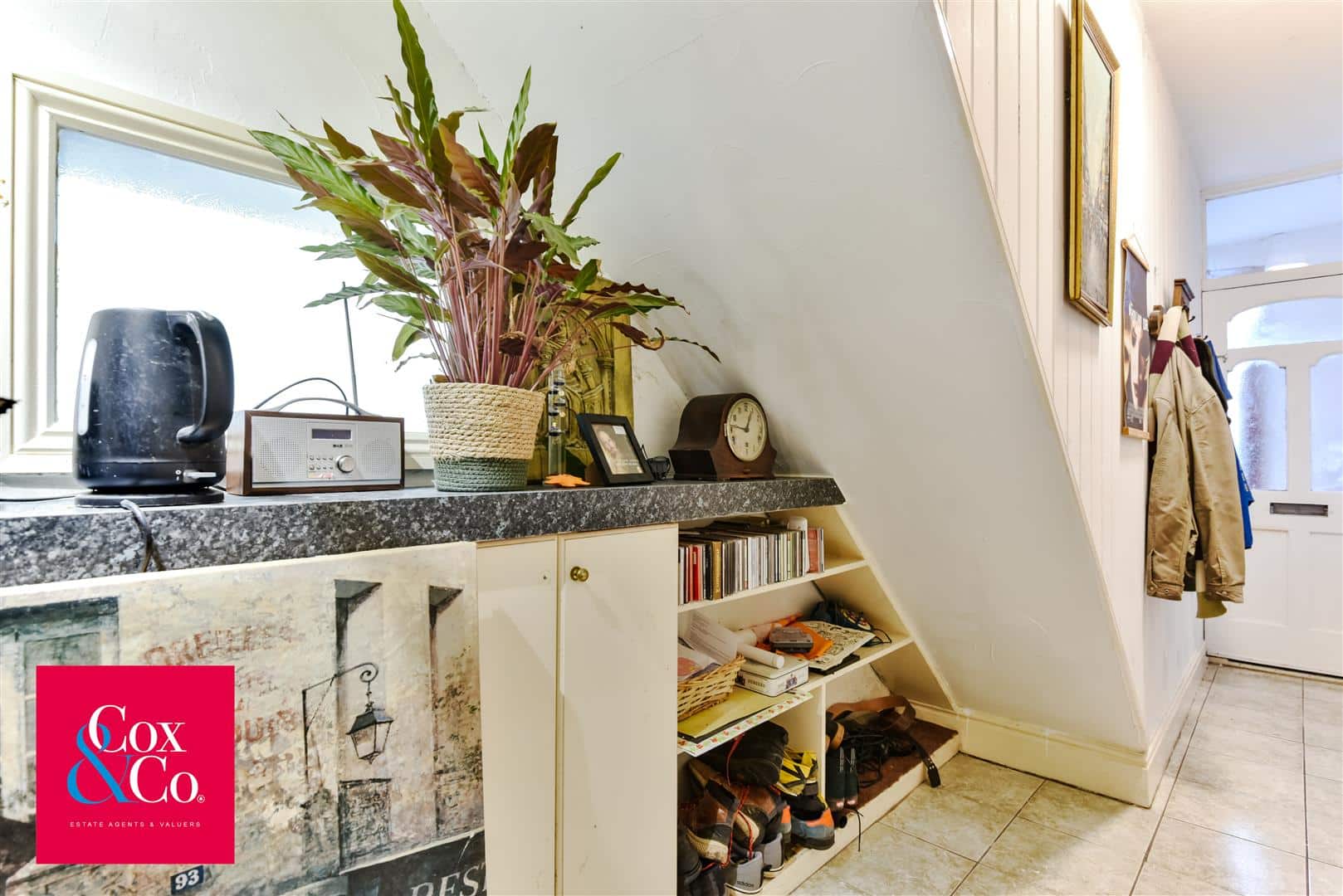 The property offers a well-proportioned double bedroom, which benefits from a pleasant outlook onto the garden as well as fitted wardrobes. Towards the rear of the apartment, there is useful storage space tucked neatly beneath the stairs.