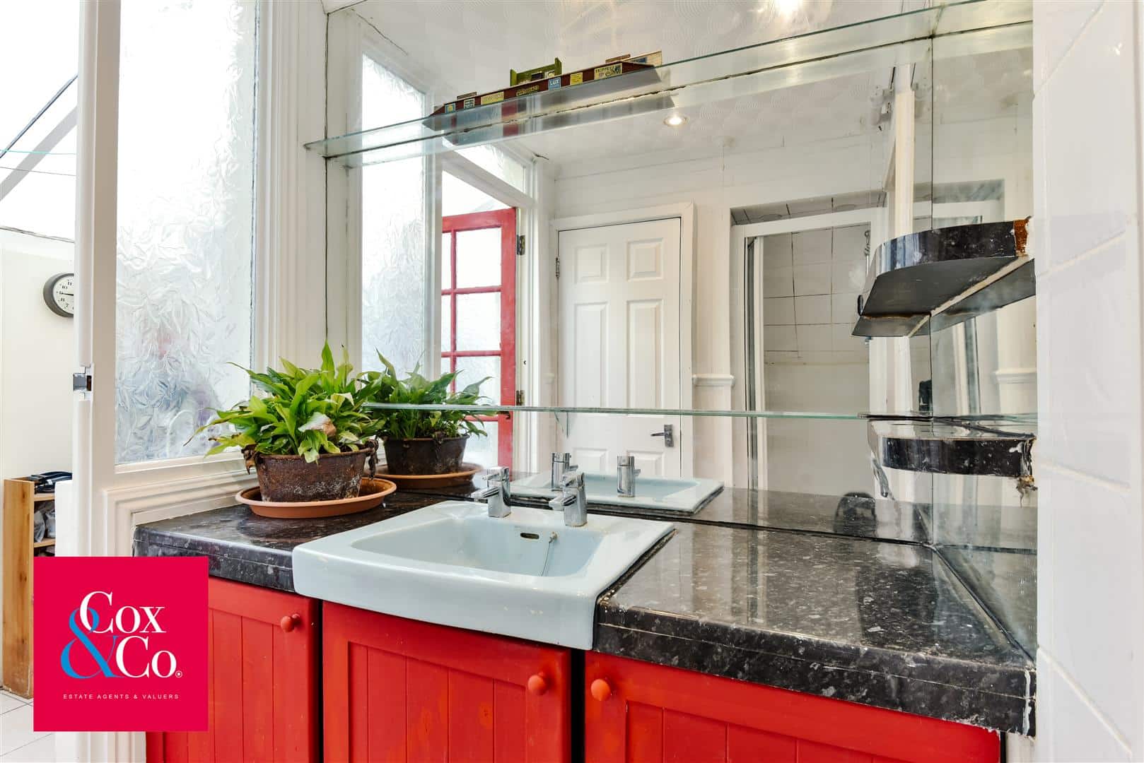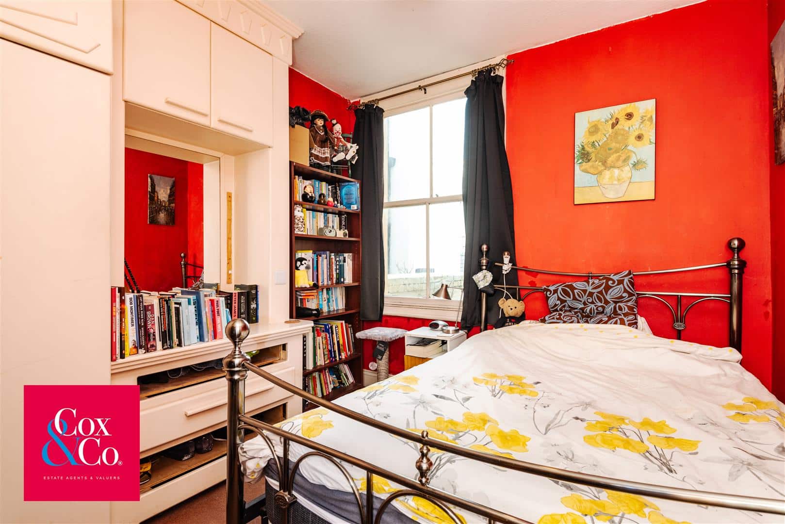 This ground-floor apartment has the potential to make into a rear garden if the current office/annexe is removed. The property is located on the sought-after St Leonards Avenue, which offers an exciting opportunity for modernisation and personalisation. Upon entry, you are welcomed by a central hallway with the living room positioned to the left, featuring two large windows that fill the space with natural light and a charming fireplace as a focal point.