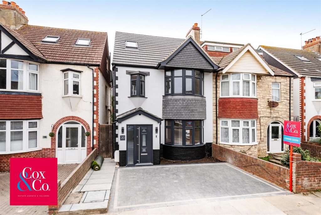 Cox & Co present this beautifully extended and fully modernised four-bedroom semi-detached home with an elegant design with practical family living in a vibrant, community-focused neighbourhood just moments from the seafront, sold with no chain.