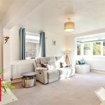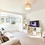 The living room is located at the rear of the apartment, providing generous proportions and attractive views over the communal gardens. This bright and comfortable space offers plenty of room for both lounge and dining furniture, making it perfect for everyday living and entertaining.