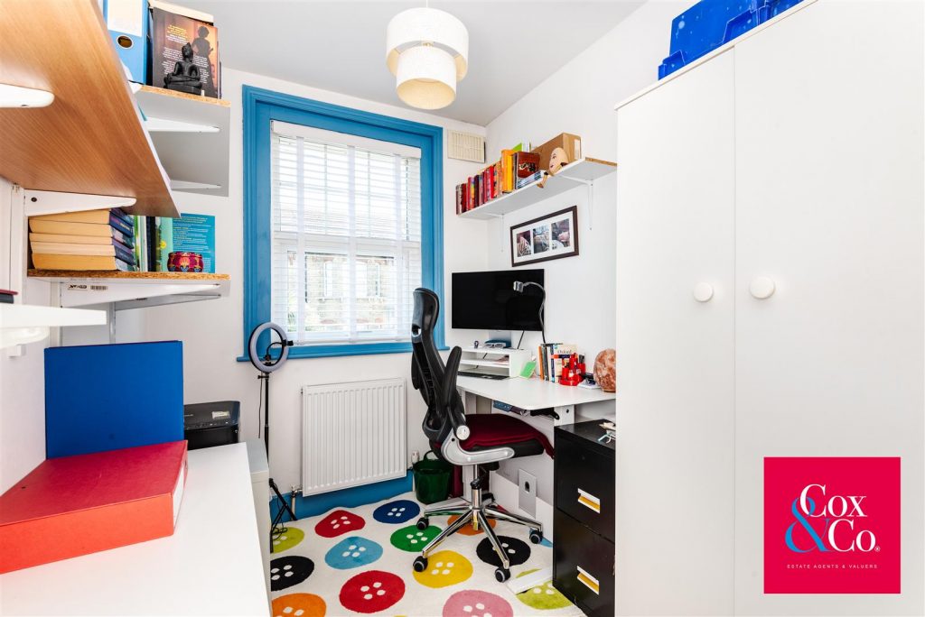 Upstairs, you'll find three well-proportioned bedrooms and a contemporary family bathroom. The primary bedroom is a spacious double, offering ample room for furniture. The second bedroom is also a good-sized double, benefiting from excellent built-in storage. The third bedroom is a versatile single – ideal as a child’s room, guest space, or home office.